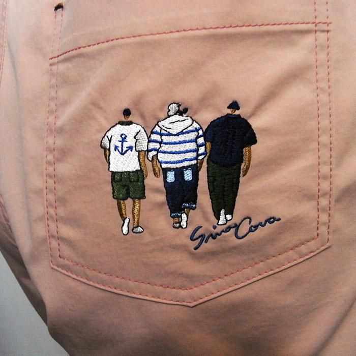 後ろのキャプテンと船員の刺繍の模様がユニークです。