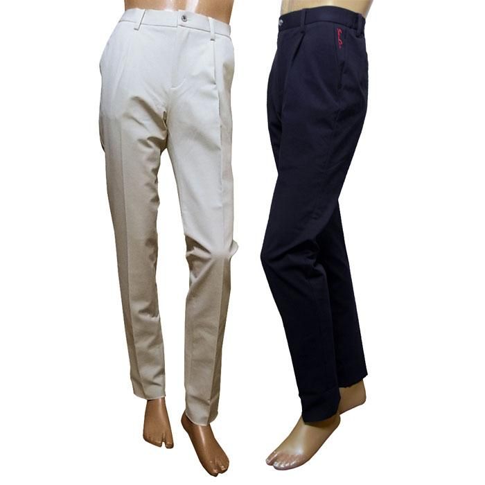 細番手の綿を使用したストレッチポンチのワンタックパンツ。