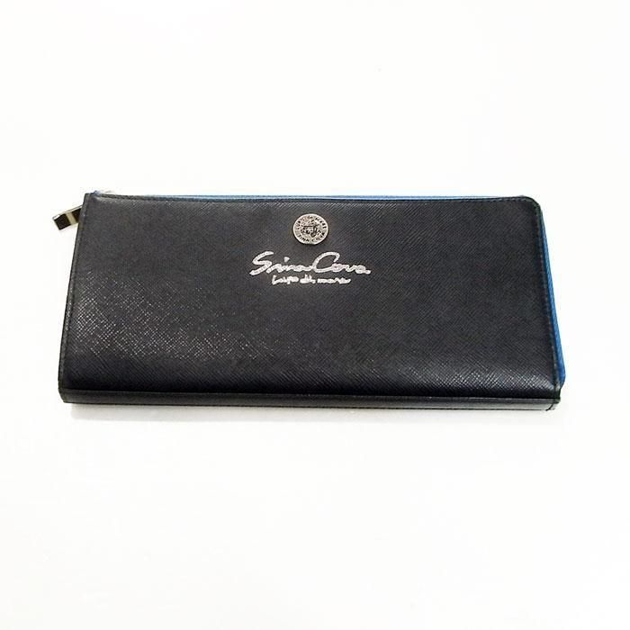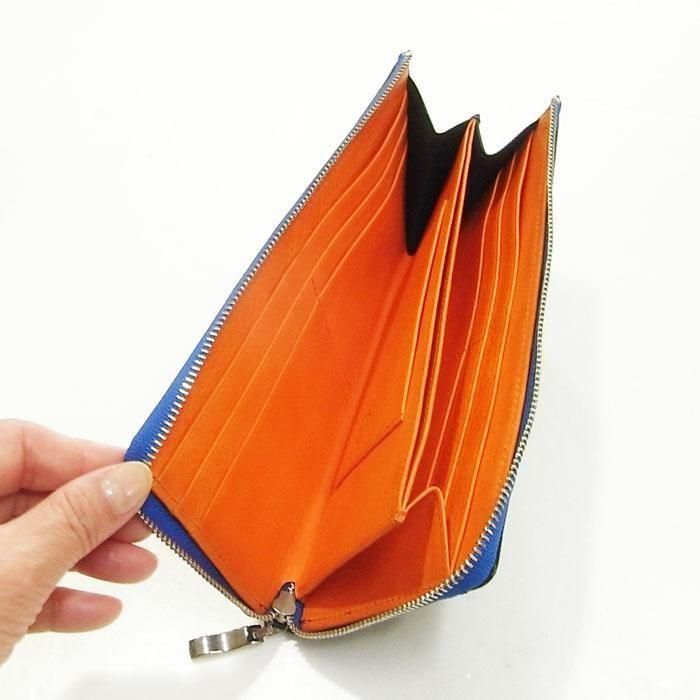 牛革の財布。内側はオレンジで印象的なコントラストになっています。