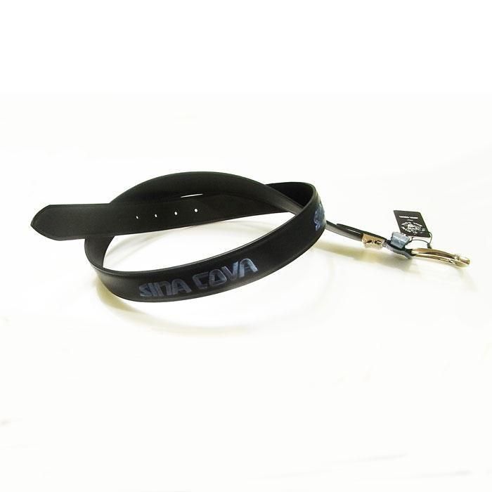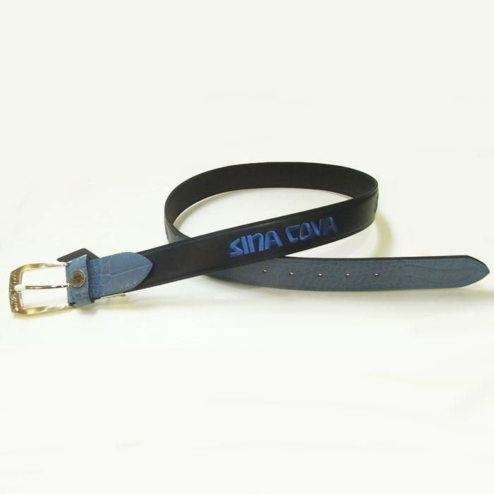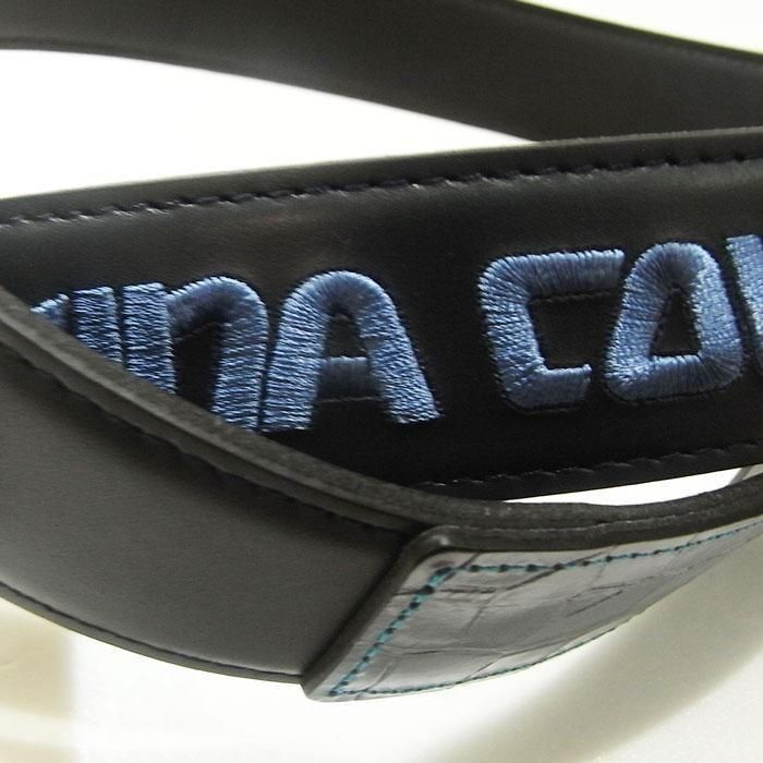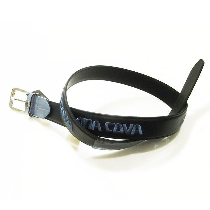 25276010 ロゴ刺繍のスムース革とクロコ型押しのベルト