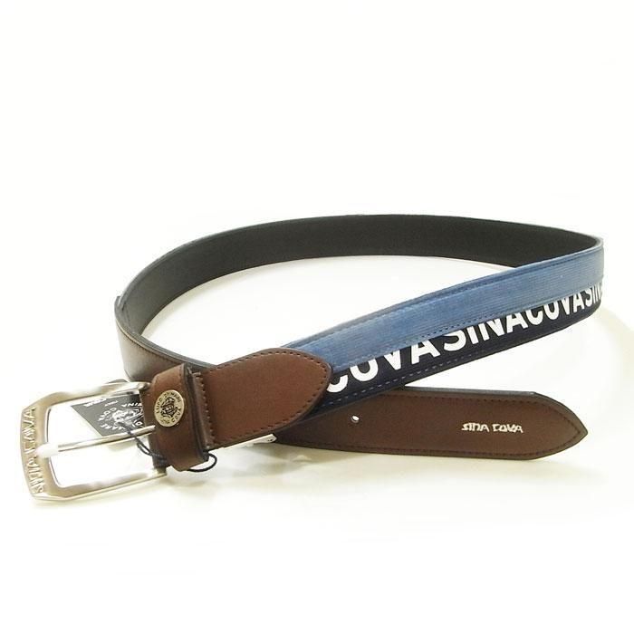 25276020 コーデュロイ素材と牛革のロゴ模様のベルト