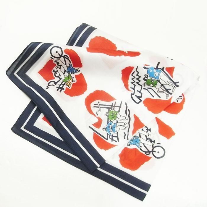 ひとつの角にボタンホールがありシャツのボタンにかけて食事中のナプキンの代わりにもなります。