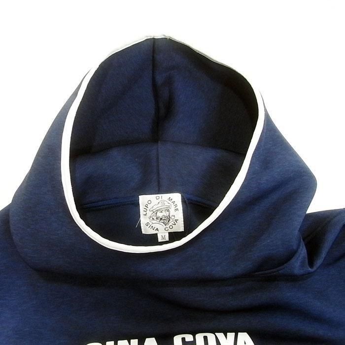 前中心のフードの高さは8cm、オフタートルのような温かみを感じられ、さらにフードで、ボリューム感が出ます。